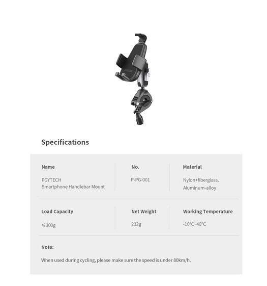 Secure your smartphone to your bicycle or motorcycle with the PGYTECH P-PG-001 Smartphone Handlebar Mount. Featuring a full wrap mount, anti-slip protection, and dual locking ball head adjustment, this mount ensures your phone stays safe while giving you full tilt and rotation flexibility for navigation, notifications, or recording…