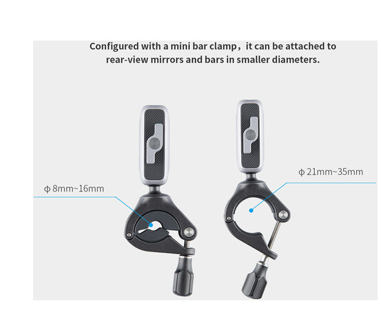 Clamps to handlebars 0.3–0.6" or 0.9–1.4" diameter