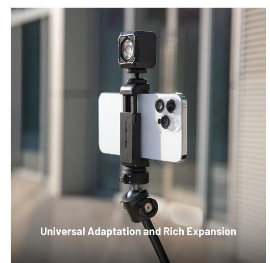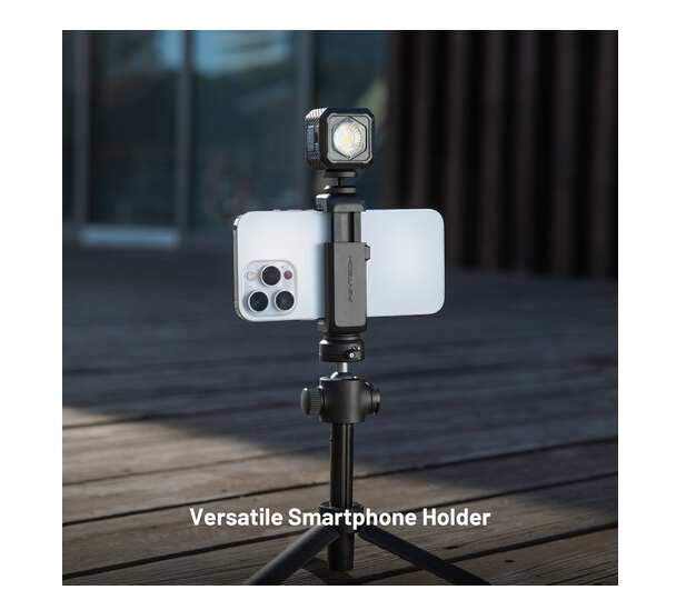The PGYTECH P-CG-187 Versatile Smartphone Holder securely holds smartphones 2.4–3.6" wide and offers a 1/4"-20 tripod mount and cold shoe mount for accessories. Silicone gaskets prevent slips, and a one-push unlock makes adjustments fast and easy.