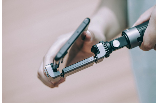 The pole is retractable, extending from 9.25" up to 21.85", with a maximum phone width of 3.54" to accommodate most smartphones. A textured, non-slip rubber handle ensures a secure grip during handheld use. Its lightweight, compact design makes it easy to carry, perfect for on-the-go shooting or travel vlogging.