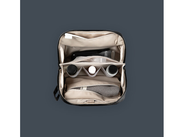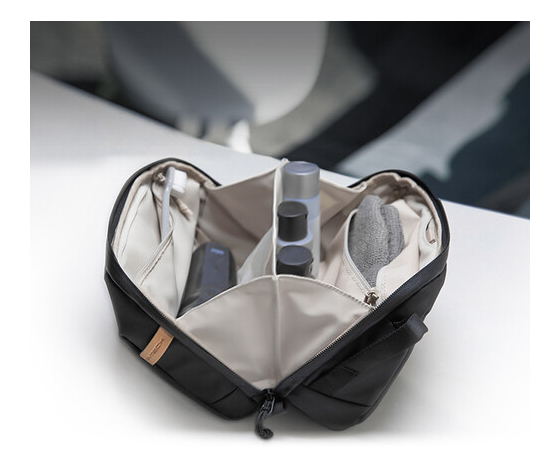 The PGYTECH P-CB-097 Wash Pouch is designed to keep your toiletries neatly organized and protected. Its innovative wet-and-dry separation system uses two waterproof interior pockets to prevent water from mixing with dry items. Elastic loops securely hold travel-size bottles of shampoo, body wash, or lotion, while dedicated pockets accommodate a toothbrush, razor, and dental floss. The exterior and interior are made from splash-resistant fabric and lined with a wipe-clean material.
