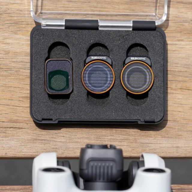 The FX 3-Pack for the DJI Mini 3 Pro includes three specialty effects filters to help you get creative in-camera. Featuring our blue and gold streak filters + 1/4 diffusion filter, this set is for those looking to create a one-of-a-kind look from the skies. The aluminum frame ensures each filter is gimbal optimized. Like all of our gear, this filter kit is backed by Adventure Assurance™, giving you confidence these filters will withstand the harshest shooting environments.