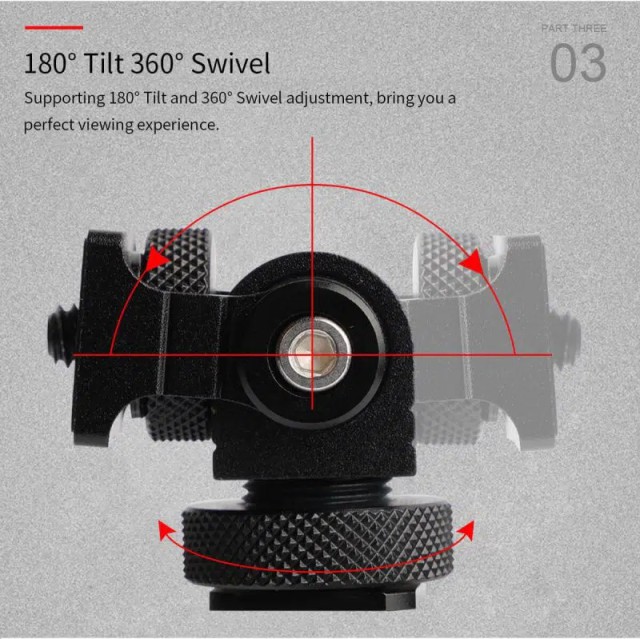 With Standard 1/4” Threaded Interface, it can be expanded filed monitors, tripod, recorders, cameras, mobile phones, etc.