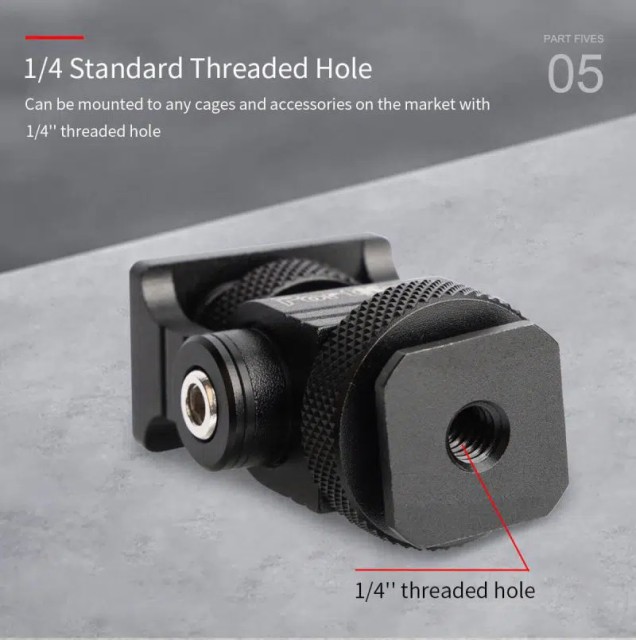 The Standard1/4” Threaded Hole can be mounted to any cages and accessories on the market with 1/4” threaded hole