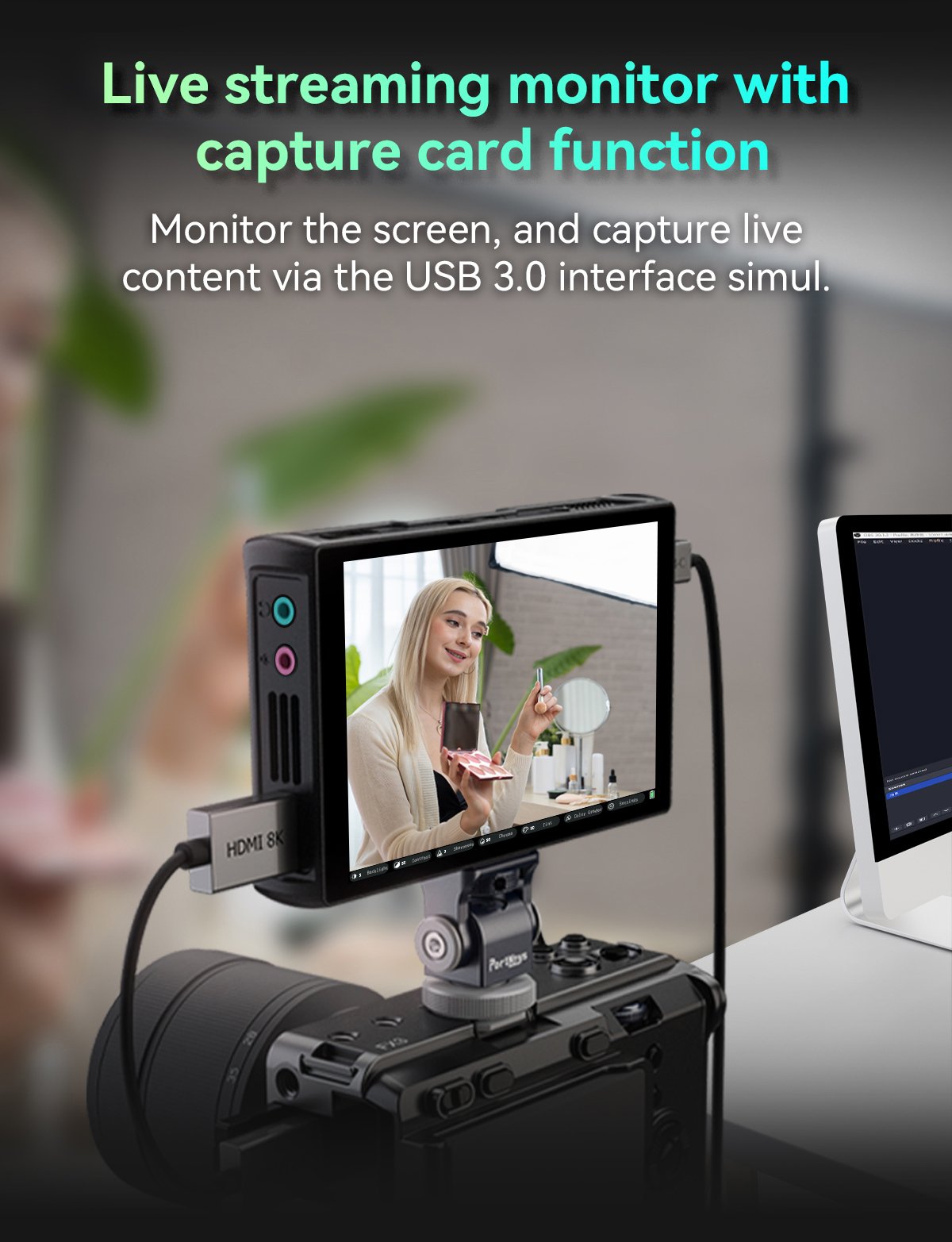 4K HDMI Touchscreen Monitor, Built-In Capture card, Professional Monitorin Functions. The 5.4″ PL5 is designed as an indoor streaming monitor with an integrated capture card. This feature makes it easy to connect directly to your computer and start streaming from any HDMI video source.