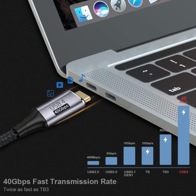 - Transfer speed: 40 Gbit/s, up to 80x faster than standard USB2.0