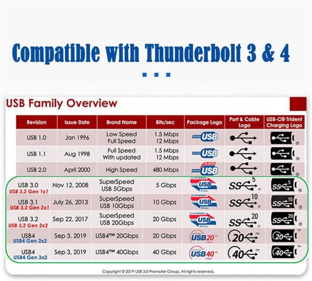 - Backward compatible with USB3.2, USB3.0, USB2.0 and Thunderbolt 3