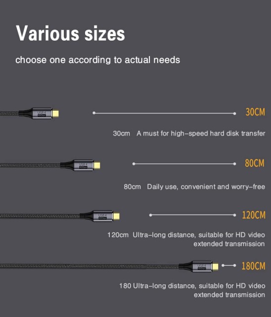 - Video resolution 8K@60Hz, up to 40Gbps (supports DisplayPort Alt Mode 2.0)