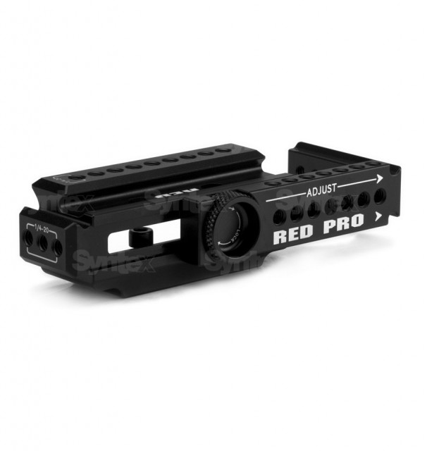 Featuring an adjustable SWAT rail slide, the DSMC TOP MOUNT (ADJUSTABLE) provides an excellent mounting solution for those interested in expanding camera-top modularity. The adjustable SWAT rail slide provides a convenient mounting point for the Spinner with Bomb EVF Mount Pack or other SWAT rail clamp accessories. Compatibility: WEAPON, EPIC/SCARLET DRAGON, EPIC/SCARLET M-X.