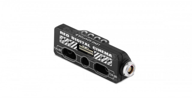 The WEAPON LEMO Adaptor B enables you to use the WEAPON RED Touch 7.0" LCD or WEAPON RED Touch 4.7" LCD with your existing EPIC or SCARLET camera BRAIN. The WEAPON LEMO Adaptor B converts the display signal from a pogo connection to a legacy EVF/LCD LEMO port. The WEAPON LEMO Adaptor B is designed to mount to your EPIC or SCARLET camera BRAIN using standard 1/4-20 mounting holes. When used along with the WEAPON LEMO Adaptor A, this adaptor enables you to mount a WEAPON RED Touch 7.0" LCD away from the camera BRAIN—to a NOGA arm or other stable mounting point. Compatibility: WEAPON, EPIC, SCARLET, RAVEN.