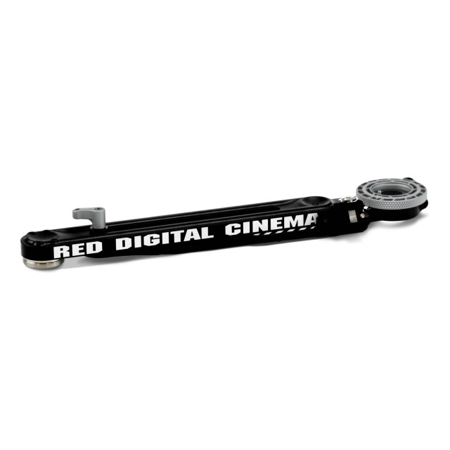 The RED EVF Mount is a lightweight 15 mm LWS rod-based EVF mounting solution. RED designed the mount for use with the RED Compact EVF and the DSMC2 RED EVF (OLED), on DSMC3 and DSMC2 camera systems. The RED EVF Mount features a multi-axis telescoping design, which allows the operator to easily find the optimal position for every situation. The mount includes a quick-connect screw-on EVF clamp, laser etched distance and angle markers, machined thumb-screws for quick and easy adjustability, and support for the RED EVF Extension Arm (sold separately).