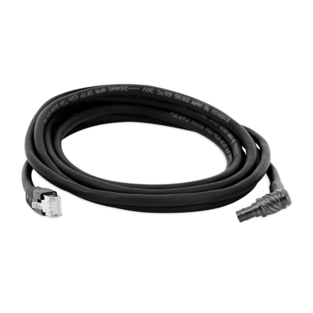 The RED GIG-E Right-To-Cat5E Ethernet Cable (9') is a high-quality cable that allows you to connect your DSMC2® camera to a computer via the GIG-E port on the camera BRAIN® or expander. This cable provides support for external metadata ingest, as well as tethered recording and data transfer using REDCINE-X PRO®.