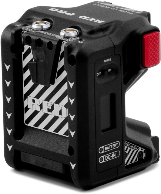 The module also includes an operator side LCD which displays key power voltage and battery percentage information (with compatible batteries) and a power switch to cut power to the module when leaving a battery on the module for long durations. Designed for Komodo-X and compatible with V-Raptor.