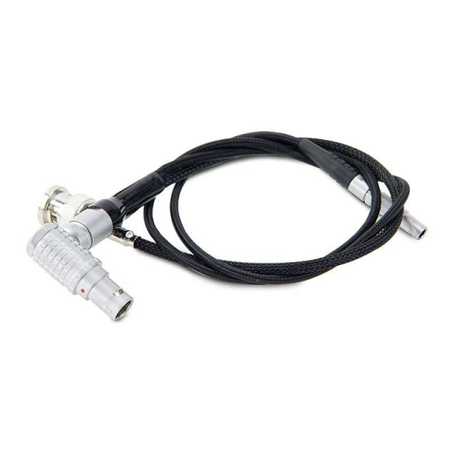 The RED START/STOP CABLE (1B TO SYNC, CTRL, BNC) provides start/stop and tally support through the RED W.M.D. (WIRELESS MOTOR DRIVER). The 14-pin 1B LEMO connects to the EXP port on the W.M.D, and transfers the tally signal from the BRAIN to the W.M.D. The 4-pin LEMO connects to the CTRL port on the BRAIN. The BNC connector connects to the SYNC port on the BRAIN via a 3BNC-TO-00 SYNC CABLE and a BNC-TO-BNC Adaptor, and transfers the start/stop signal to the BRAIN. NOTE: Full support for start/stop requires the 3BNC-TO-00 SYNC CABLE and a BNC-TO-BNC ADAPTOR (included with the RED 3-Axis Lens Control System). The 3BNC-TO-00 SYNC CABLE has two additional BNC connectors that offer support for timecode and genlock.
