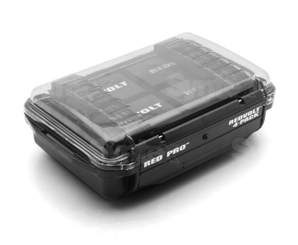 This water-resistant REDVolt case holds four batteries for a portable storage solution.
