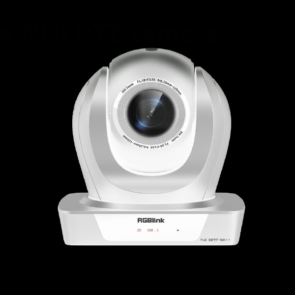 The RGBlink 4K Vue NDI PTZ camera is a high-performance camera with stable AI tracking, 3840x2160@60 resolution, versatile output options and advanced features such as dual microphone and PoE+, making it ideal for a variety of professional applications. Color: White.