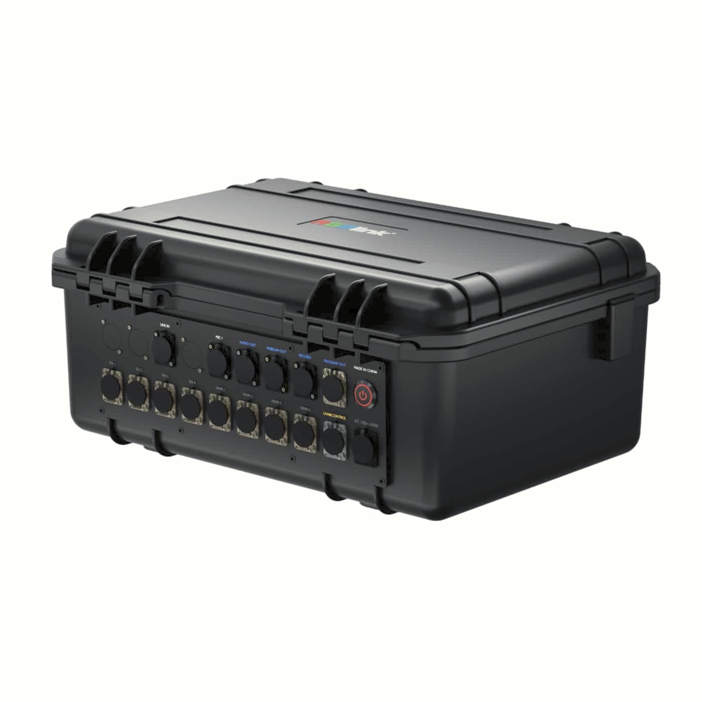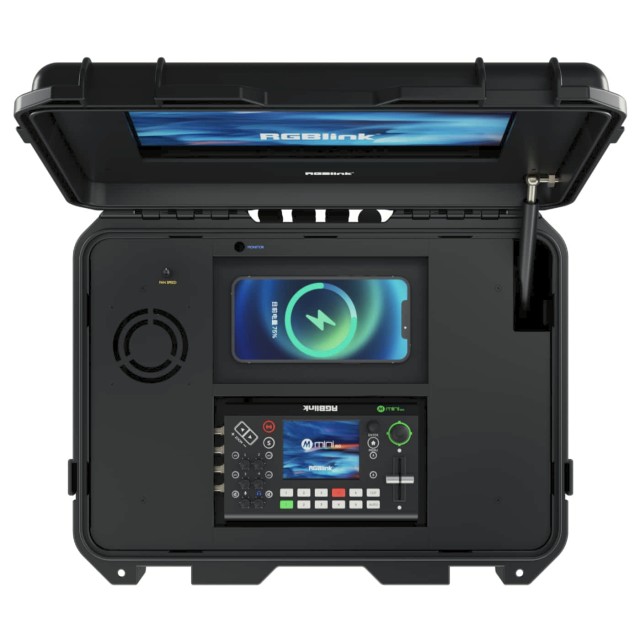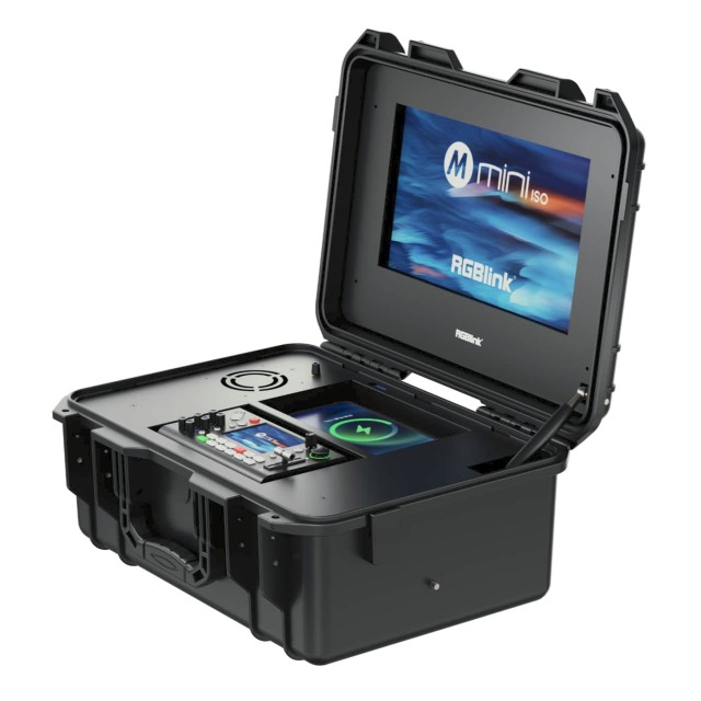 The RGBlink mini-ISO 4S is a compact, portable 10-channel video switcher designed for professional multicam production and hybrid streaming. Featuring 4K HDMI and SDI inputs, dual HDMI outputs, USB recording and UVC webcam output, integrated PTZ control, RTMP streaming, and a built-in 14″ monitor with wireless charging support, it delivers a complete turnkey solution for events, live productions, and mobile broadcasting.