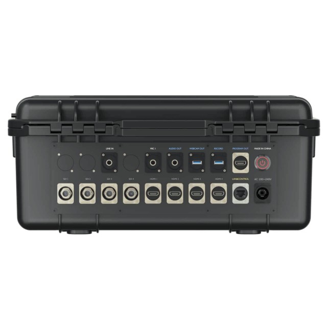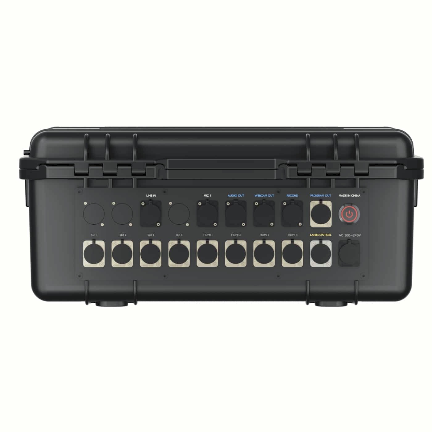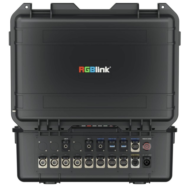 The RGBlink mini-ISO 4S is a versatile all-in-one streaming switcher built for professional live production, hybrid streaming, and events. Housed in a durable ABS flightcase with a built-in 14″ HD IPS display and hydraulic support, it combines portability with stability and long-lasting reliability. The switcher offers 10 total video inputs: 4 × 4K HDMI 2.0, 4 × SDI, plus NDI and USB UVC, along with dual HDMI 1.3 outputs for program and multiview monitoring. USB outputs allow webcam use and MP4 recording at up to 16 Mbps, supporting FAT32 and exFAT storage formats.