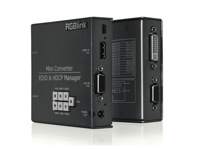The RGBlink MSP 221 is a compact EDID and HDCP manager designed to simplify multi-display setups. Supporting HDMI and VGA inputs with DVI and VGA outputs, the MSP 221 enables automatic EDID detection, read/copy/write functions, and USB-based configuration. It supports output resolutions up to 2560×816, ensuring compatibility with a wide range of professional displays.