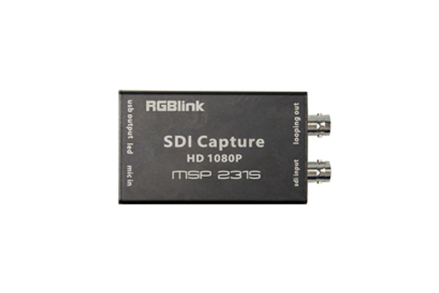 The RGBlink MSP 231S 1080P SDI Capture is a portable, high-performance video capture device that converts SDI signals into USB output for professional video streaming and recording. Designed to meet UVC/UAC standards, it captures a single SDI input (with loop output) and provides resolutions up to 1920×1080 at 60 fps. A built-in 3.5 mm MIC input allows synchronous audio capture, ensuring professional-quality recordings.