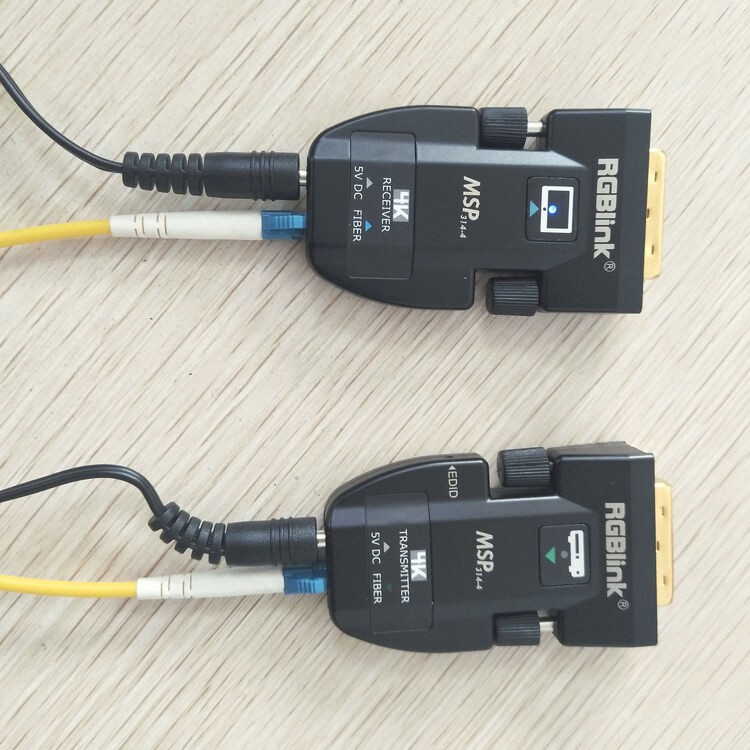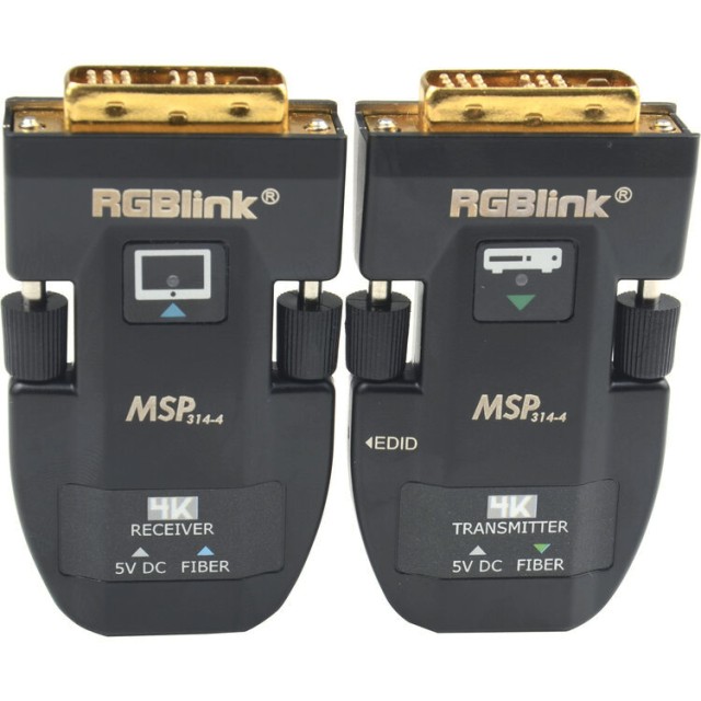 The RGBlink MSP 314-4 is a compact fiber-optic DVI extender set (TX & RX) that transmits high-resolution video up to 2000 meters over single-mode fiber. Supporting WUXGA, HDMI 1.4 (4Kx2K@30Hz), EDID storage, and EMI resistance, it is perfect for portable AV setups, conference rooms, and professional installations requiring long-distance, reliable DVI extension.