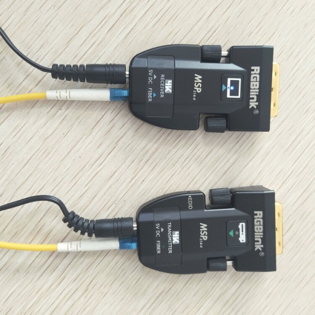 The RGBlink MSP 314-4 is a versatile DVI-over-fiber extender system that allows you to extend high-quality video signals over long distances with minimal interference. The compact transmitter and receiver units feature integral LC fiber connectors and support resolutions up to WUXGA (1920×1200@60Hz) and HDMI 1.4 (4Kx2K@30Hz). Using single-mode fiber, video can be transmitted up to 2000 meters, while multi-mode fiber supports distances up to 300 meters.