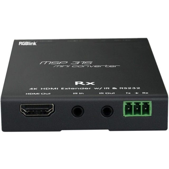 The RGBlink MSP 315-4 is a compact HDMI to HDBaseT extender set designed to transmit high-quality video and control signals over long distances. Supporting up to 4K30 video transmission, bidirectional control, and power over HDBaseT, it is an ideal solution for professional AV installations such as conference rooms, classrooms, and control centers.