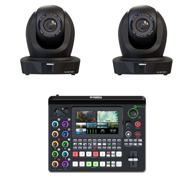 2 HDMI cameras and miniEdge switcher. 20x vue PTZ*2, mini-edge *1, 15m CAT6*2 15m AOC cable * 2, 8 ports PoE switcher * 1 PTZ ABS Case *1