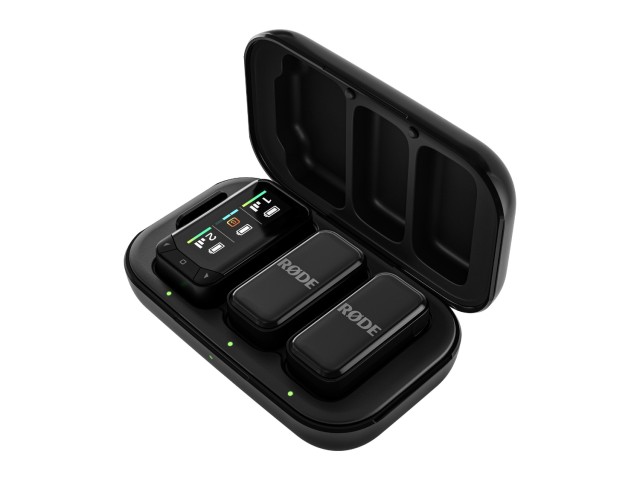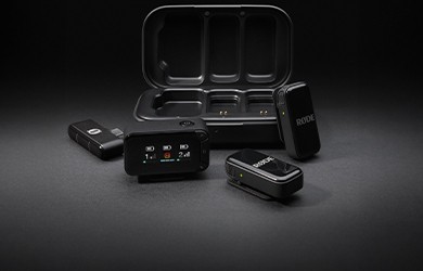 The compact RODE Wireless Micro Camera Kit is a complete wireless solution for content creators, vloggers, and journalists. The package includes two clip-on transmitters with built-in microphones, a camera receiver with a 1.1" AMOLED display, and a USB-C receiver for mobile devices.