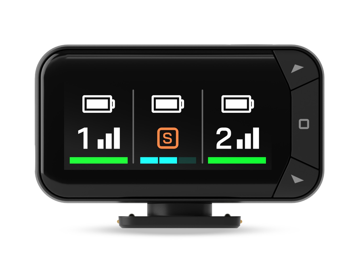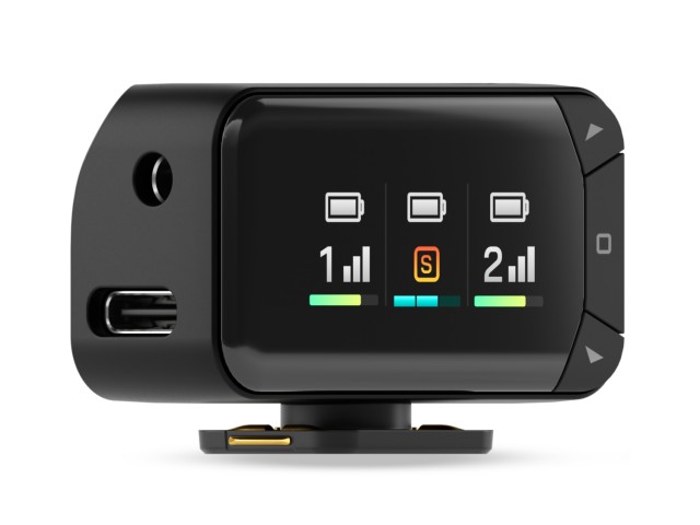 The camera receiver features a 1.1" AMOLED display that clearly shows signal levels, connected units, and current settings. The system automatically recognizes plug-in power and adapts to the type of camera connected for optimal performance.
