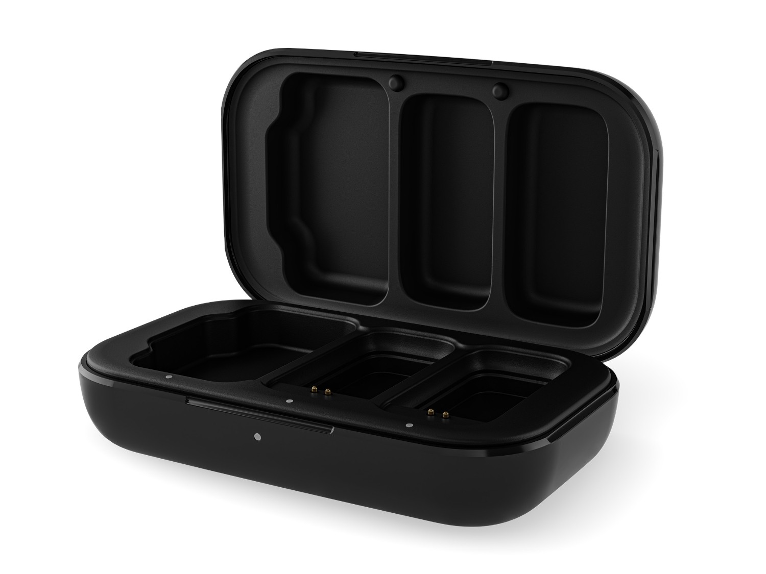 Both transmitters and receivers offer up to 7 hours of operation on a single charge. The included 490 mAh charging case provides two full charges, extending the total battery life of the system to 21 hours. Charging via USB-C takes approximately 2 hours.