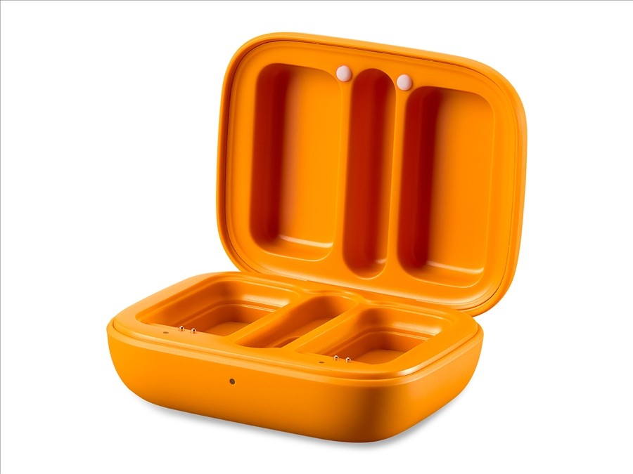 Charge Caseis a protective carrying case for both transmitters and the receiver. It also functions as a charging dock, which ensures that the transmitters are recharged during transport or filming breaks. It can be powered by the included USB-C cable, or you can use the internal battery, which can fully recharge all components of the set twice.