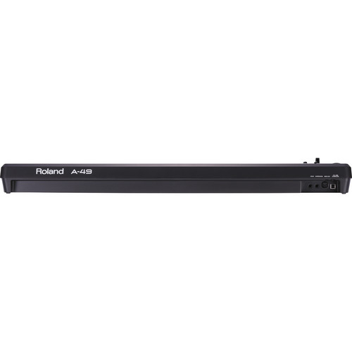 The Roland A-49-BK is a lightweight 49-key MIDI keyboard controller with velocity-sensitive keys, D-BEAM control, USB bus power, and assignable controls—ideal for both studio and stage setups.