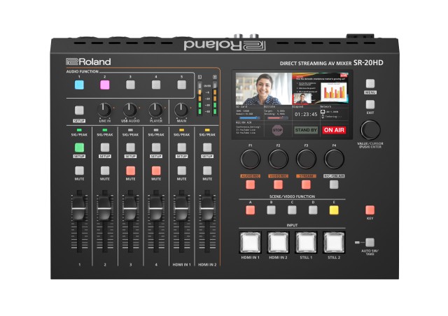 Roland SR-20HD Direct Streaming AV Mixer is a powerful and portable audio/video switcher that makes it easy to deploy livestreaming in a business or organization with minimal training. It combines a video switcher, audio mixer, preview screen, recorder/player, and streaming encoder in one unit. Presenters can stream directly to YouTube Live, Facebook, Twitch, or by RTMP to a CDN without the need for a computer.