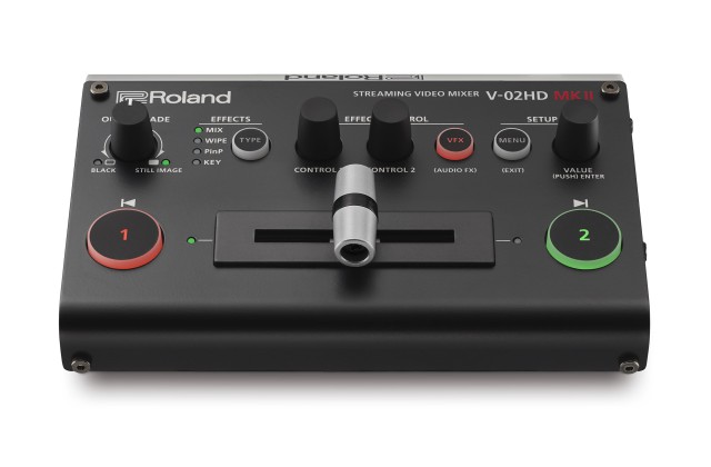 Ditch the webcam and step up your livestreams with the Roland V-02HD MK II Streaming Video Mixer, the world’s easiest two-camera live streaming solution. Compact, affordable, and simple to use, this desktop device allows you to connect and switch two high-quality HDMI cameras and send them directly to your favorite streaming platform over USB-C. You can also mix in audio sources via dedicated inputs and HDMI, apply video effects and transitions, and more. With the V-02HD MK II, you have the interface you need to bring higher production values to your live video productions.
