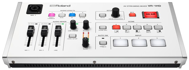 The VR-1HD has three “worry-free” HDMI inputs, and each one accepts a variety of HD and computer-based video resolutions. This lets you connect, switch and stream different sources including cameras, presentations, gameplay and even smartphones and tablets without having to think about it. The audio from these sources can be blended with the two studio-quality XLR microphone inputs and dedicated line input. Best of all, as the VR-1HD is designed for live broadcasting, its dedicated controls and top-mounted mic input (with gooseneck mic) let you go hands-free and headset-free while livestreaming.