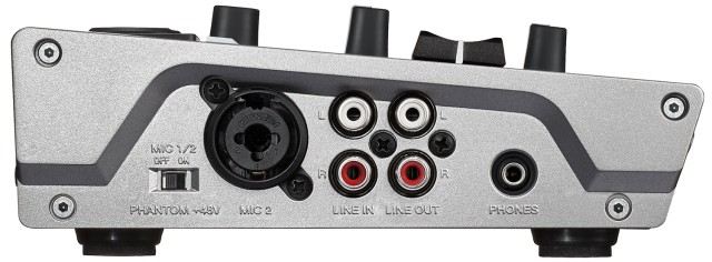 • MIC IN 1–2: Combo XLR/1/4" TRS (phantom power DC 48 V, 10 mA max)
