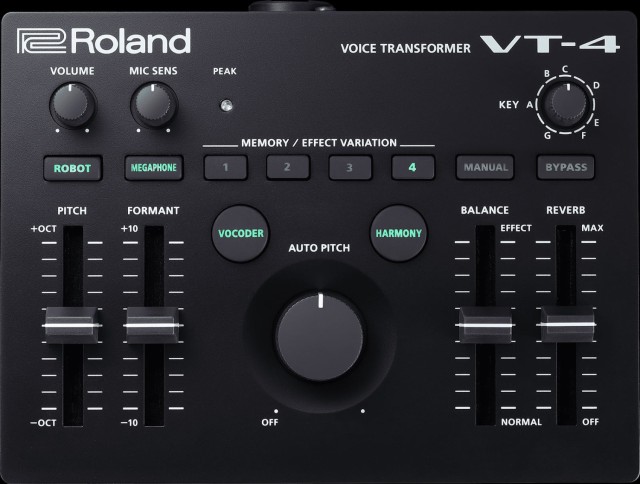 Great-sounding pitch and formant effects are hard to come by, especially without a computer. And real-time tweaking of these effects often results in nasty artifacts and other unpleasantness. With the VT-4 you have totally smooth, instant control over both pitch and formant, with dedicated faders for each. Dramatically change your entire persona from male to female, big to small, or good to evil—the choice is yours.