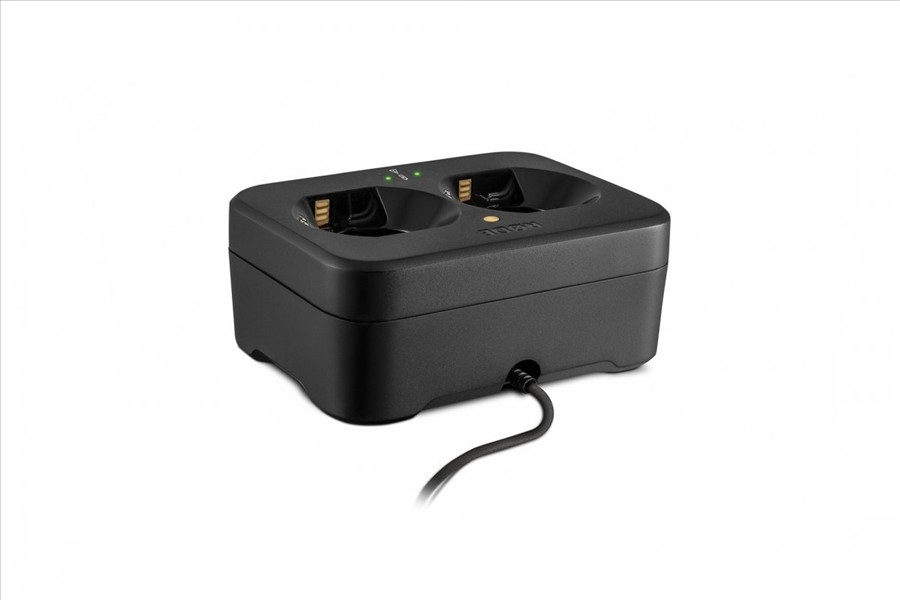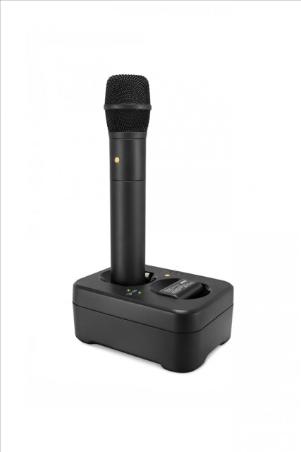The RØDE RS-1 is a charging station with the ability to charge two devicesfor RØDE Interview PRO, TX-M2, and LB-1 microphones.