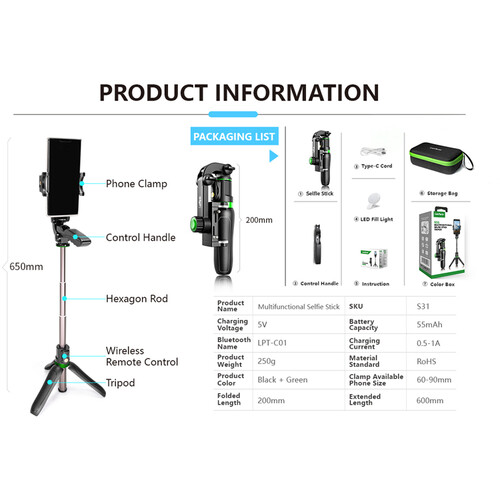 This compact, lightweight S31 Multifunctional Selfie Stick from LanParte also functions as a stabiliser and tripod for your smartphone.