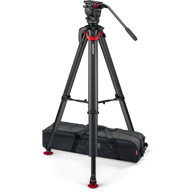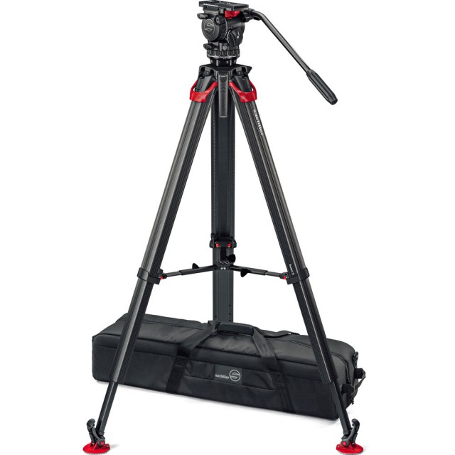 The aktiv8T flowtech75 MS Tripod System from Sachtler pairs the activ8T fluid head with the lightweight, carbon fiber flowtech 75 GS tripod with mid-level spreader. This kit offers lightning fast SpeedSwap technology, a Touch & Go camera plate, 15 levels (+0) of counterbalance, 7 levels (+0) of pan and tilt drag, and stable support for camera rigs weighing up to 12 kg. A padded carrying bag rounds out this tripod kit.