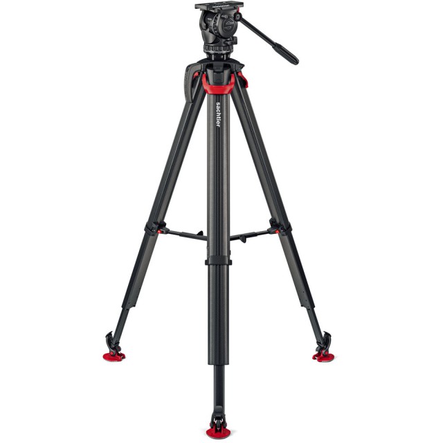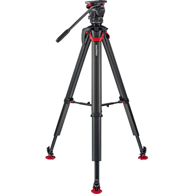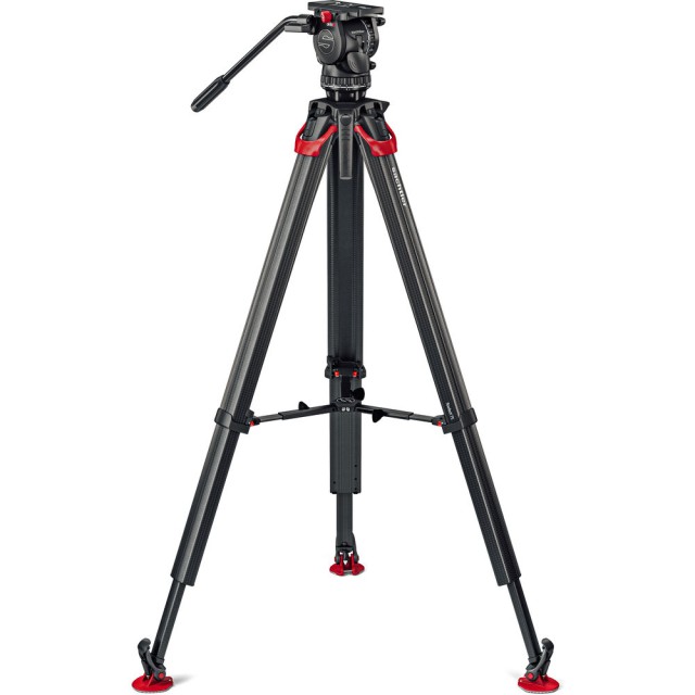 The Sachtler Flowtech 75 MS Carbon Fiber Tripod with Mid-Level Spreader and Rubber Feet eschews the common single or double carbon fiber tube design and instead has redesigned the shape of the legs for improved torsional strength. The legs work weigh just under 3 kilograms yet they can support a payload of up to 20 kilograms, and extend from a minimum height of 24" to a maximum height of 61" when using the included removable mid-level spreader. Each leg features a single clamping lever that locks and unlocks the sections.