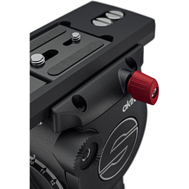 The aktiv8T Sideload Fluid Head uses Sachtler's truly innovative SpeedLevel technology to provide almost instant mounting and leveling of your camera rig on Sachtler 75mm tripod legs. The clamp and stud SpeedLevel system saves precious time leveling your camera rig by eliminating the need to screw on a tie-down knob. Designed for larger DSLRs, mirrorless, and digital cine-style cameras, the aktiv8T supports rigs weighing up to 26.5 pounds. This fluid head features 15 steps of counterbalance and seven steps of pan and tilt drag adjustment, plus zero settings for both balance and drag.