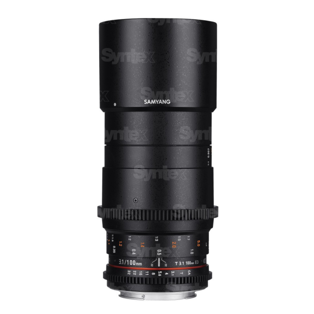The Samyang 100mm T3.1 ED UMC MACRO is one of the lenses making up the Samyang VDSLR Kit. These lenses produce the same image color and have a uniform aperture and focus ring position to ensure maximum shooting comfort.