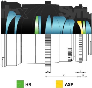 This 35mm lens produces a 47.6° coverage when used with micro four thirds cameras. Hybrid aspherical lenses render sharply defined images with a minimum of distortion and chromatic aberrations, with a minimum focus distance of just under 12" from the lens. A removable petal shaped lens hood provides flare protection when shooting without a matte box, the lenses threaded front accepts a 77mm filter ring.