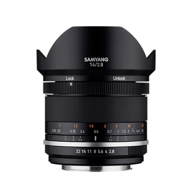 The Samyang MF 14mm F2.8 MK2 is an ultra-wide-angle, manual-focus lens with superb sharpness from corner to corner, even at its maximum wide-open aperture. The 115.7˚ wide angle of view is ideal for shooting landscapes, interiors, astro-photography etc. New MK2 version features the same optical design as MK1, but adds weather sealing, new focus ring for better grip, and a switch for de-clicking the aperture. The 14mm F2.8 MK2 also features a new focus lock switch.