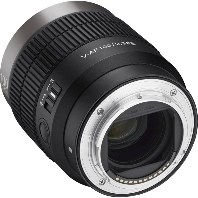 The Samyang V-AF film AF lens range focuses on high image quality while minimizing body size and weight (<300g) for maximum ease of use with camera stabilizers and drones. The range offers several different fixed focal lengths (20, 24, 35, 45, 75, 100) with identical dimensions and matched color, a serrated focus ring, and a 9-blade aperture for natural image rendition beyond depth of field. The 100mm T2.3 FE model stands out slightly from the pack with its length and T/2.3 aperture. The Samyang V-AF lenses provide very good optical resolution suitable for devices with up to 4K and 8K sensors; also of interest is the pair of LEDs indicating recording in progress, which will further facilitate the use of the lenses on stabilizers etc. The "Focus Save" button is used to lock focus settings during AF operation, while the integrated "Custom Switch" can be used to switch the ring function from focus to aperture settings in AF mode, for example. On sale from 1/2024.