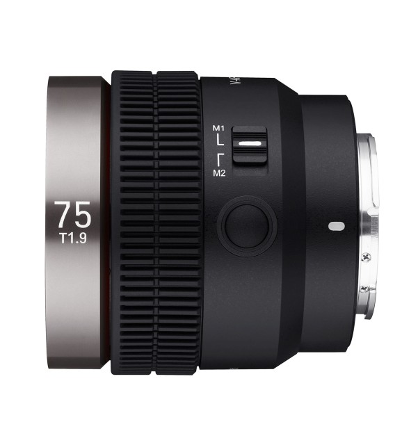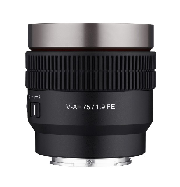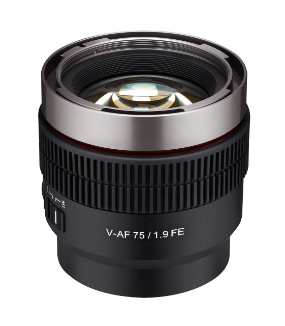 The Samyang V-AF film AF lens range focuses on high image quality while minimizing body size and weight (<300g) for maximum ease of use with camera stabilizers and drones. The range offers several different fixed focal lengths (20, 24, 35, 45, 75, 100) with identical dimensions and matched color, a serrated focus ring, and a 9-blade aperture for natural image rendition beyond depth of field. The 100mm T2.3 FE model stands out slightly from the pack with its length and T/2.3 aperture. The Samyang V-AF lenses provide very good optical resolution suitable for devices with up to 4K and 8K sensors; also of interest is the pair of LEDs indicating recording in progress, which will further facilitate the use of the lenses on stabilizers etc. The "Focus Save" button is used to lock focus settings during AF operation, while the integrated "Custom Switch" can be used to switch the ring function from focus to aperture settings in AF mode, for example. The first model in the series, the 75mm T/1.9 FE (for Sony FE mount), goes on sale on 10/2022.