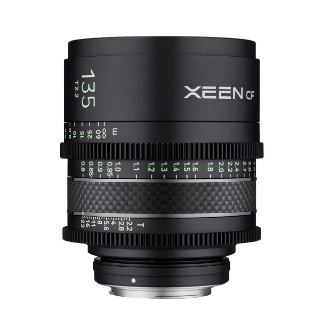Samyang Xeen CF 135mm T2.2 is a compact professional, manual focus, full frame, wide-angle cine lens which incorporate carbon fibre (lighter and stronger than metal) into the lens barrel. The lens supports 8K and full frame (large format) image sensors installed in the latest movie cameras, and features larger aperture and focus gear rings (with rounded edges) as well as luminous scales with new clearly visible font. Available for Canon EF / PL / Sony E Mount.