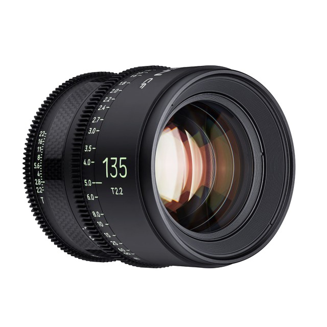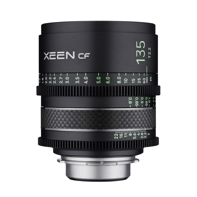 Samyang Xeen CF 135mm T2.2 is a compact professional, manual focus, full frame, wide-angle cine lens which incorporate carbon fibre (lighter and stronger than metal) into the lens barrel. The lens supports 8K and full frame (large format) image sensors installed in the latest movie cameras, and features larger aperture and focus gear rings (with rounded edges) as well as luminous scales with new clearly visible font. Available for Canon EF / PL / Sony E Mount.